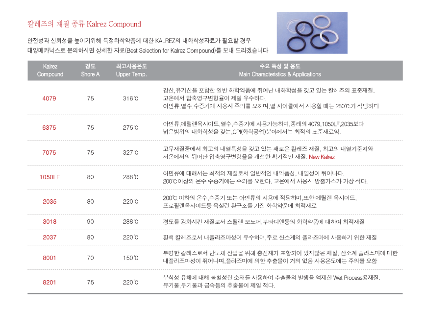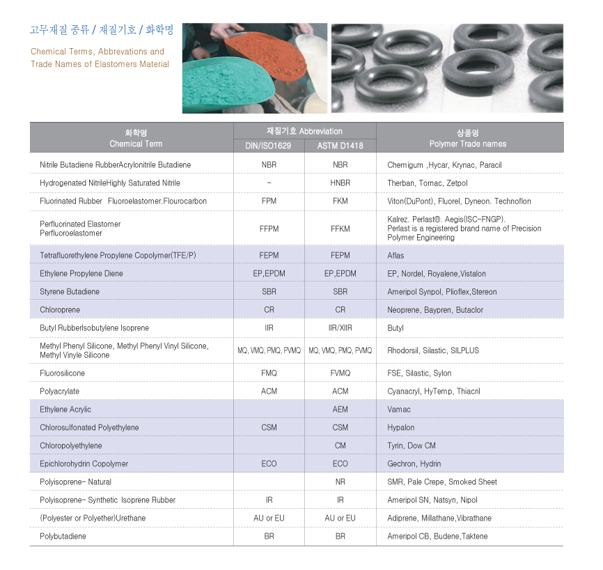 고무재질 종류/사용온도