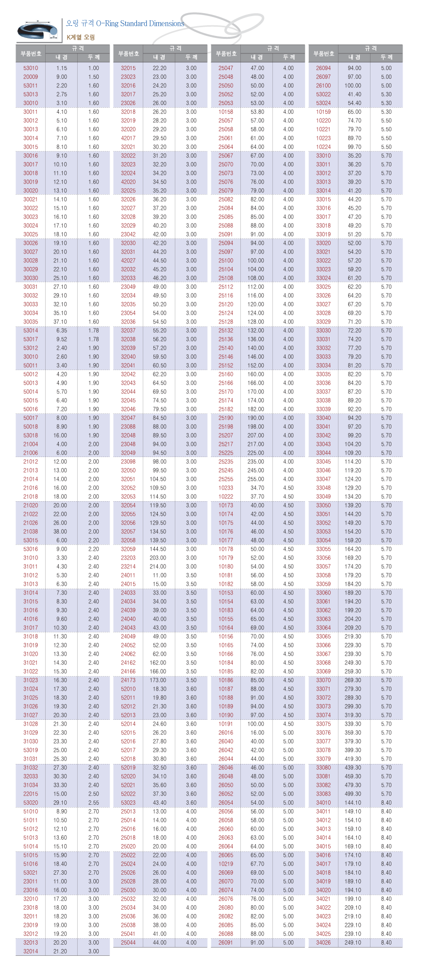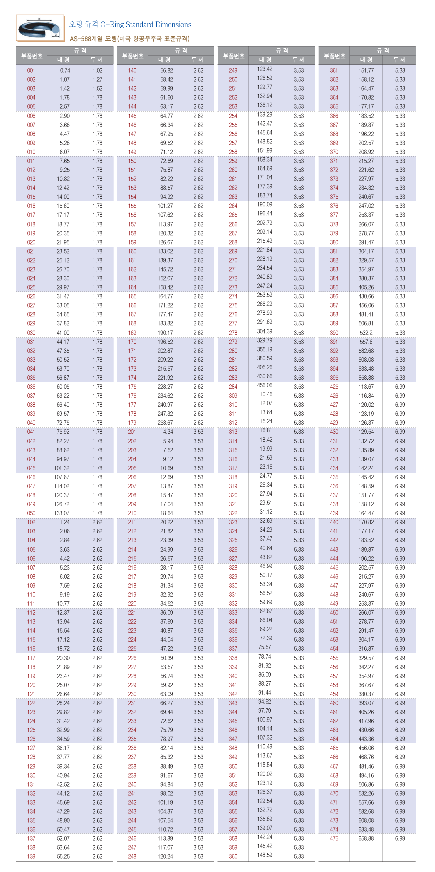 오링의 설계치수