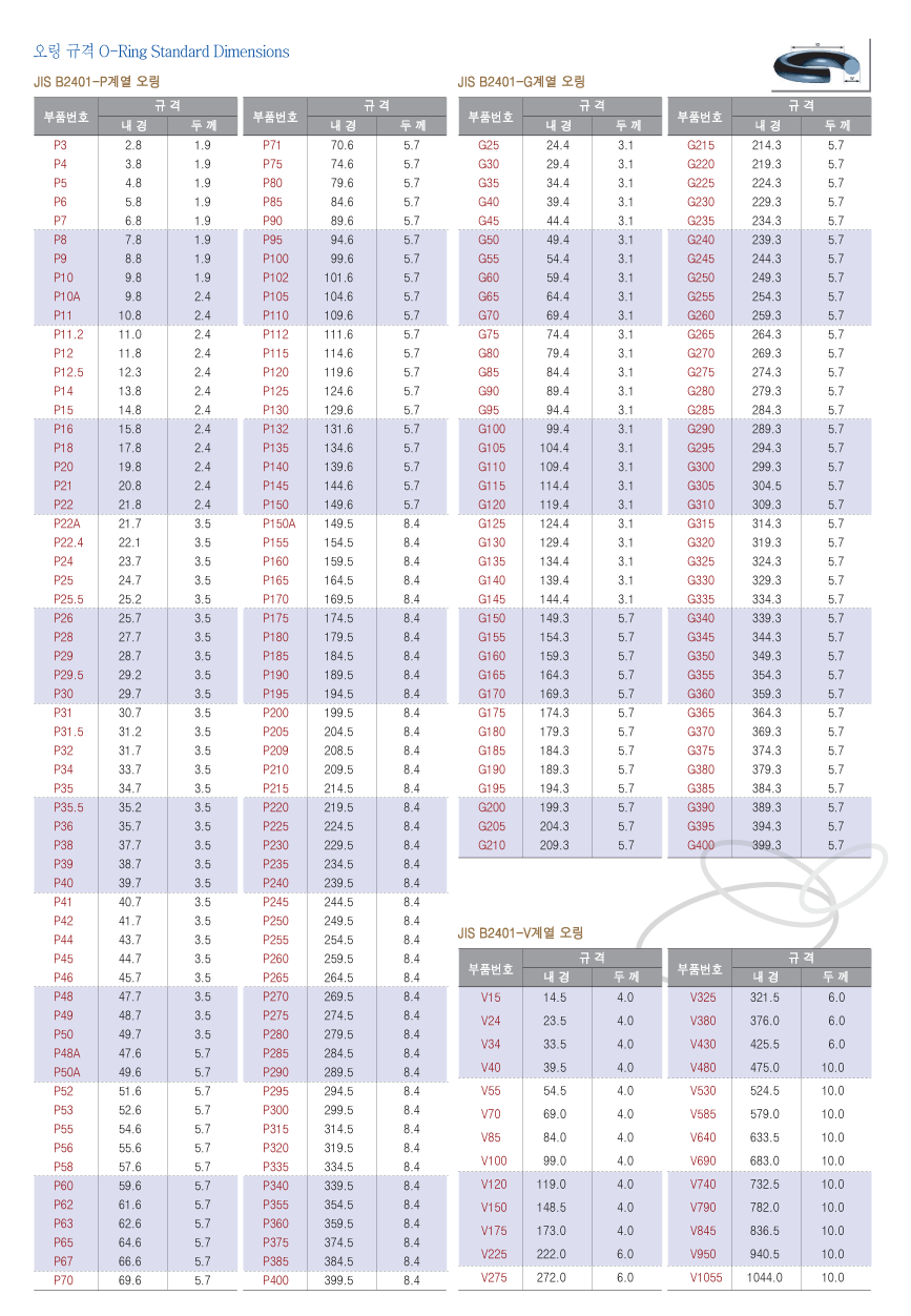 JIS B2401-P,G,V계열