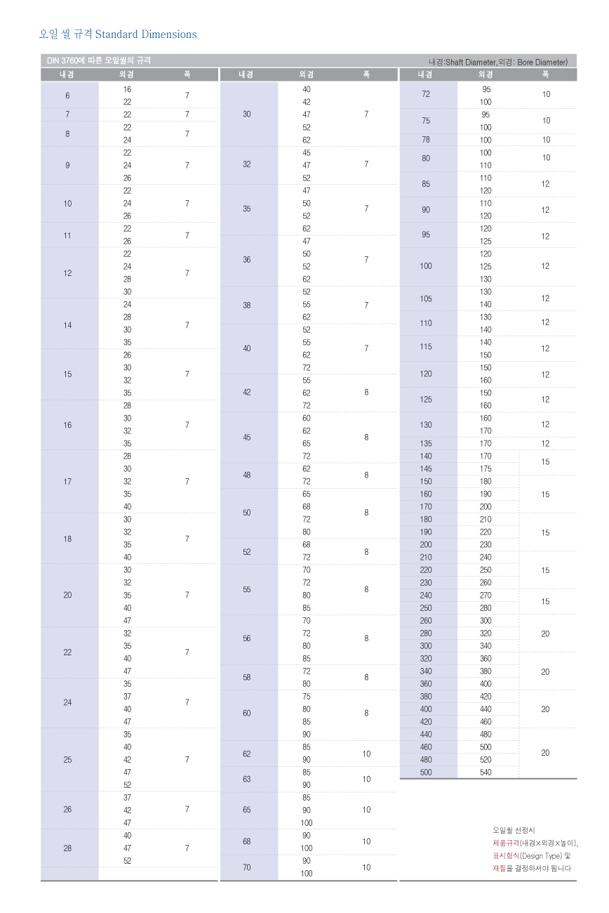 오일씰 규격